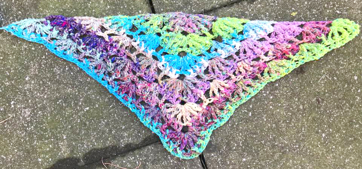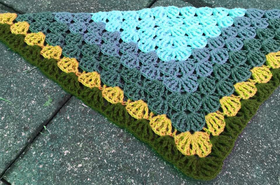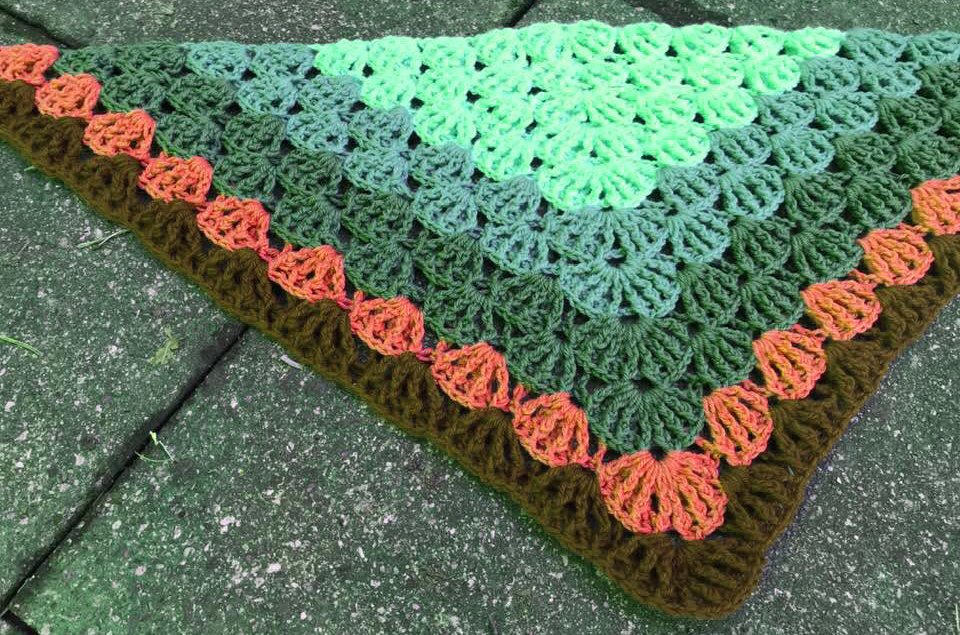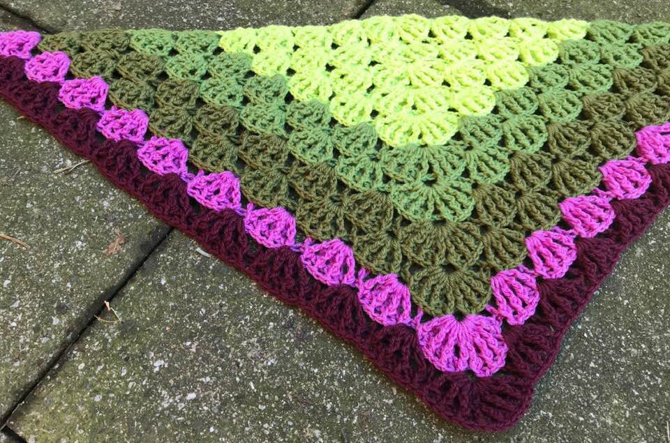 Dreieckstuch „doppeltes Muschelkrönchen“ wir von der oben in der Mitte nach unten erweitert.