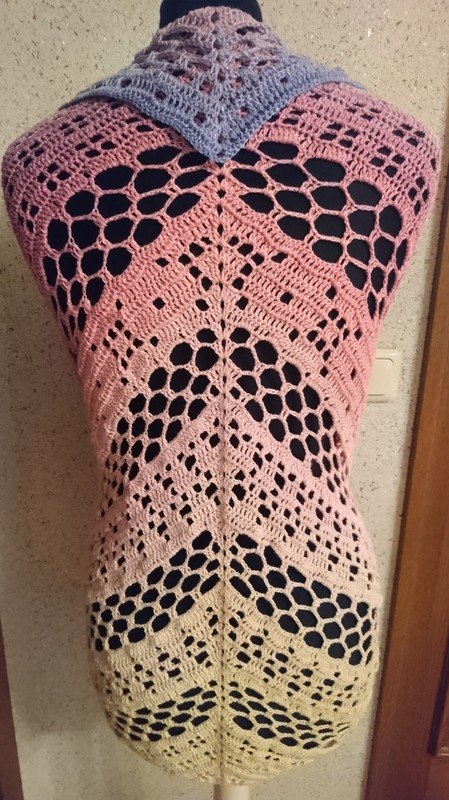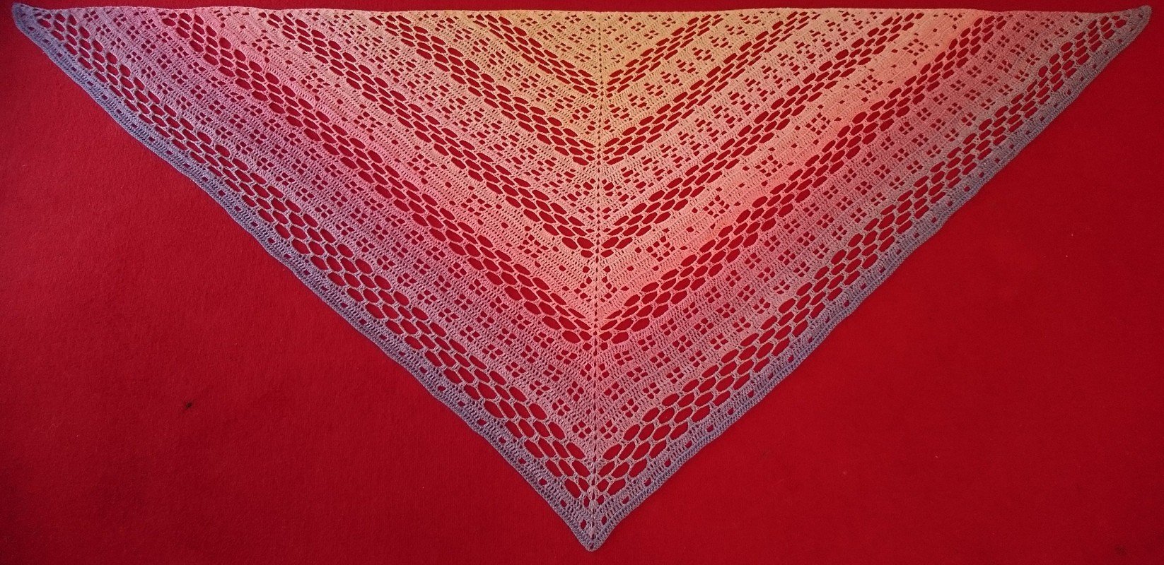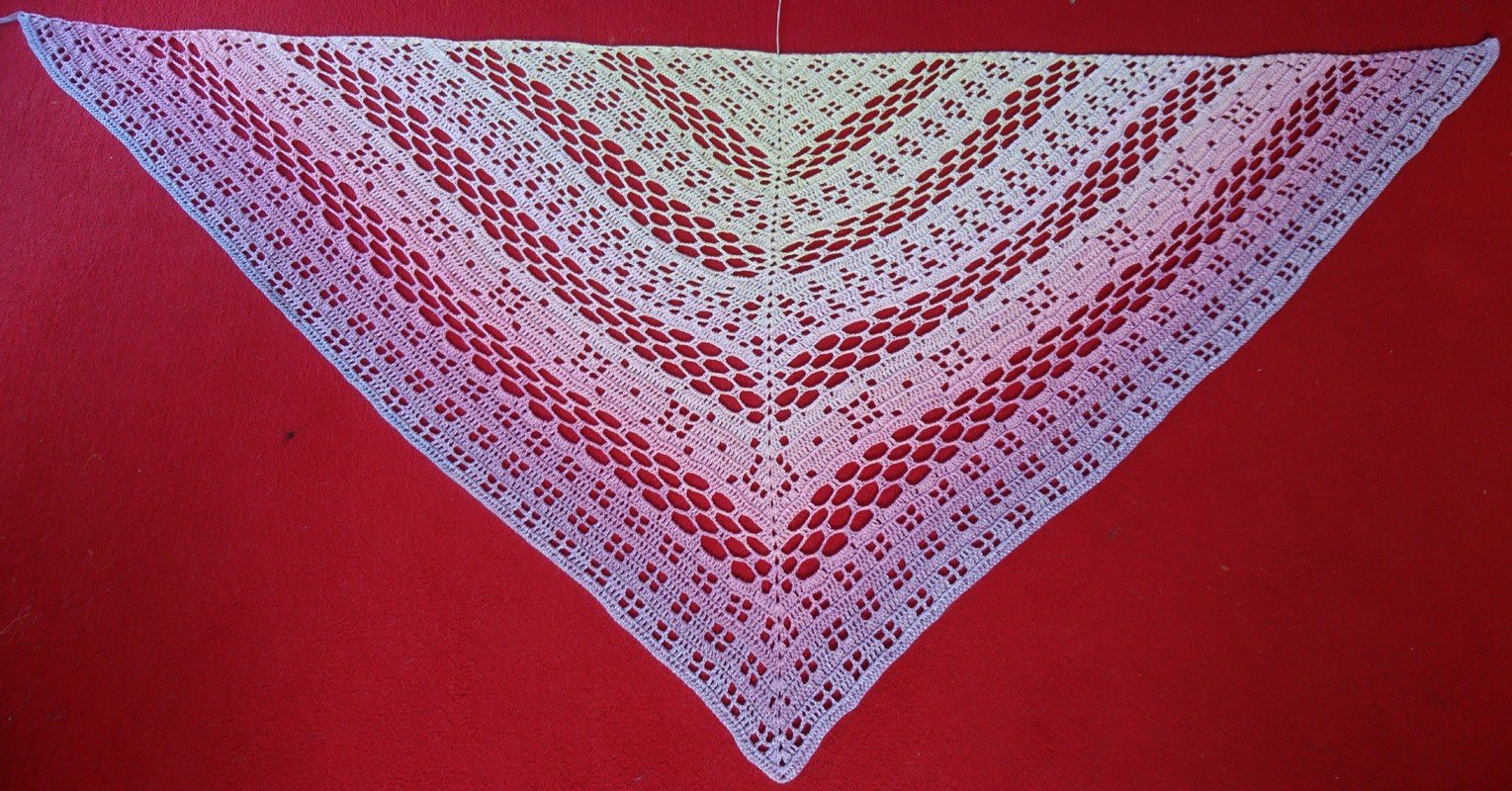 Die Anleitung für das Tuch besteht aus schriftlich ausformulierten Reihen und beinhaltet mehrere Häkelschriften.