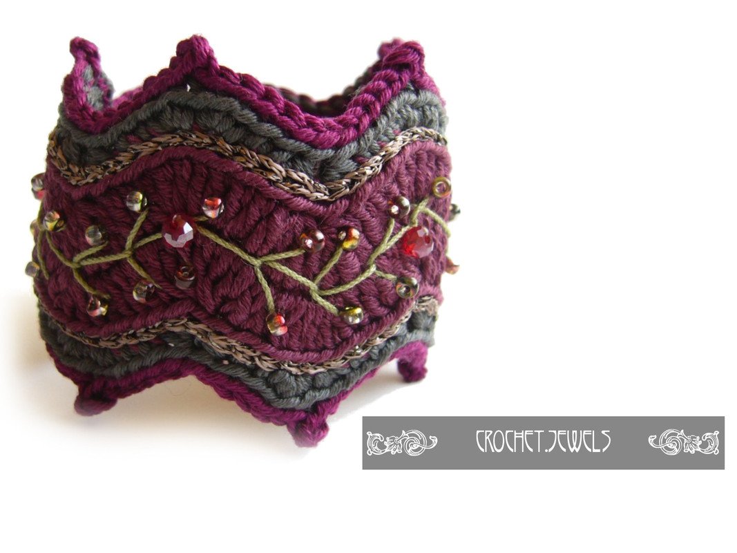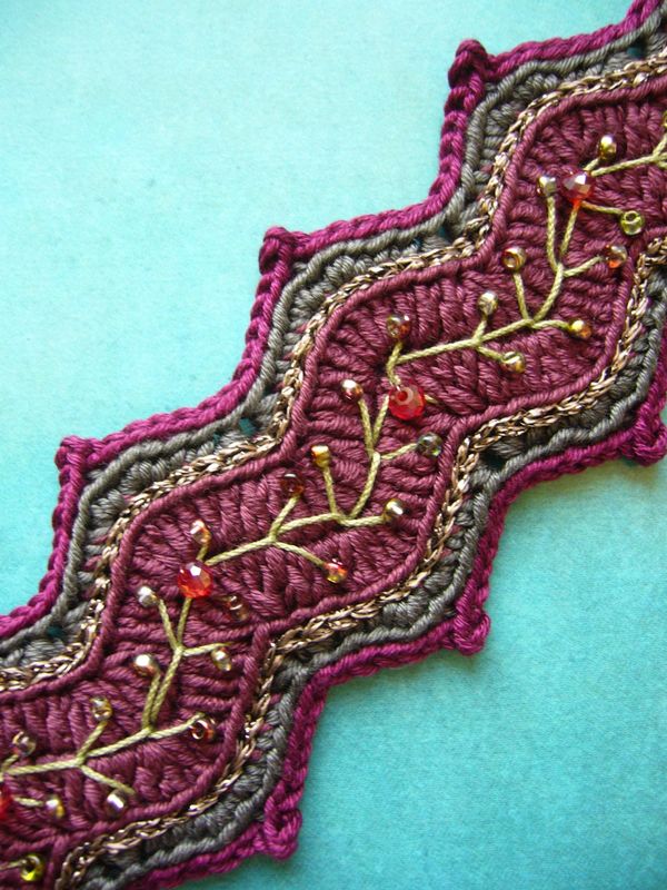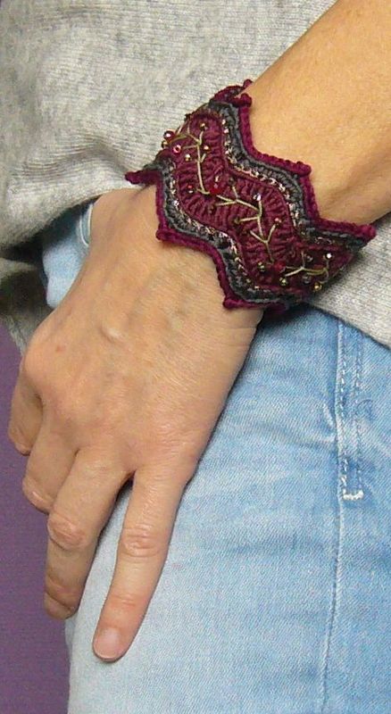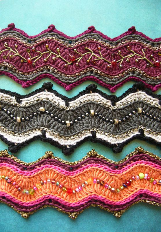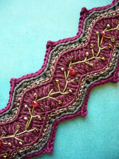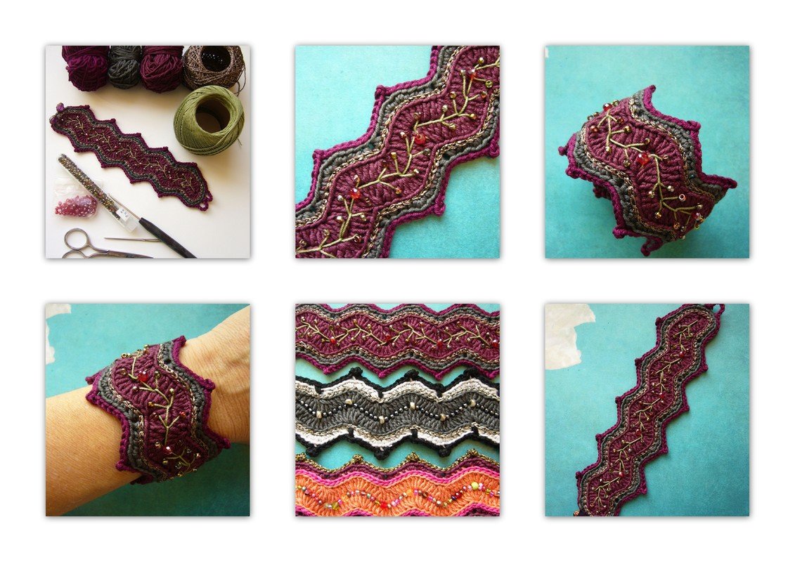 Häkelanleitung zur Erstellung eines Armbandes in Zickzackform wie abgebildet.