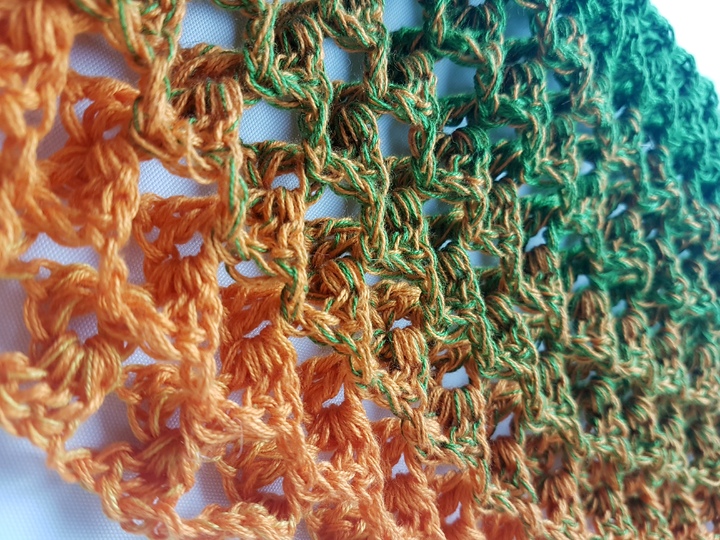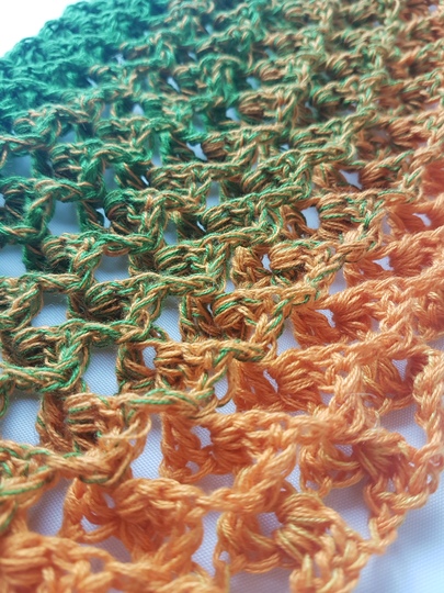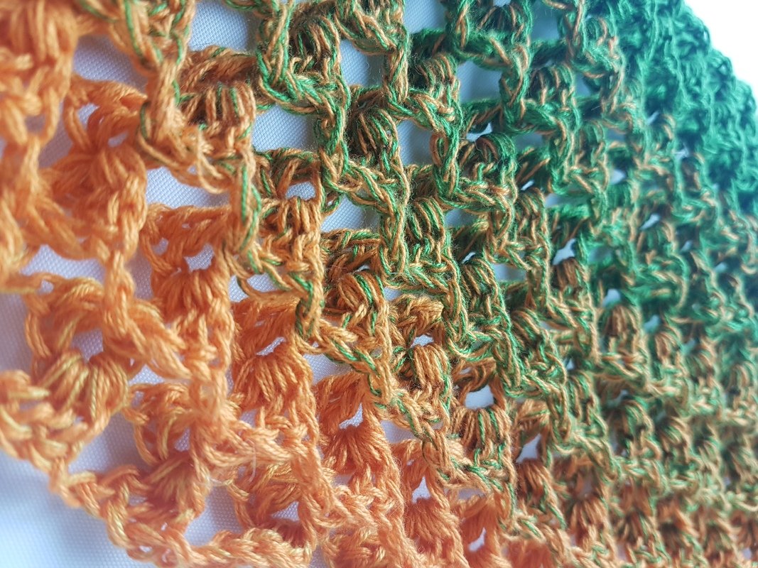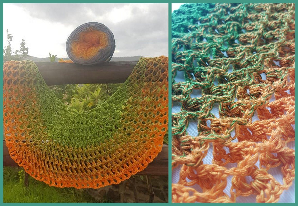 Je nach Größe 700 m oder mehr, Farbverlaufsgarn 4-fach (kann auch dicker oder dünner sein), je nach Garn Nadel Nr.3,5mm oder passende Nadelstärke,