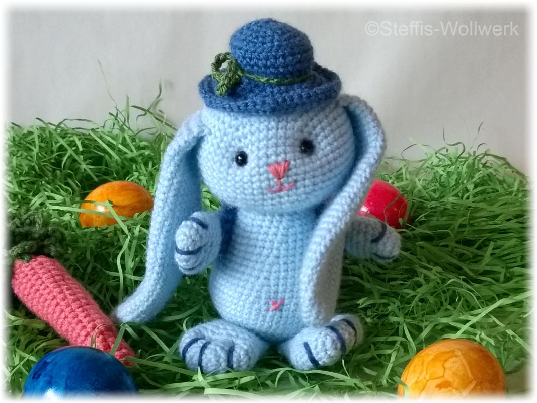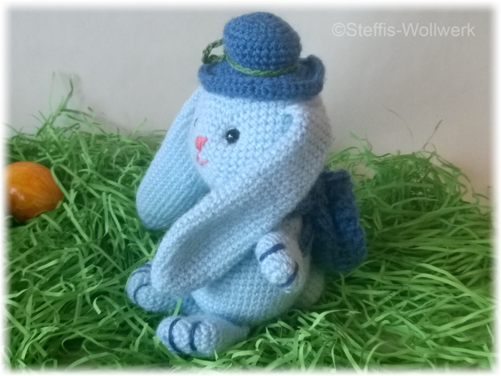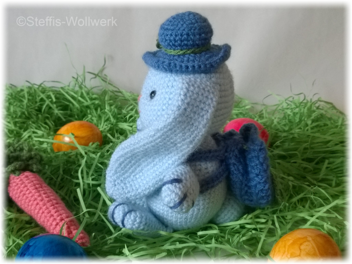 Mit dem angegebenen Garn wird Hoppel ca. 17 cm hoch.