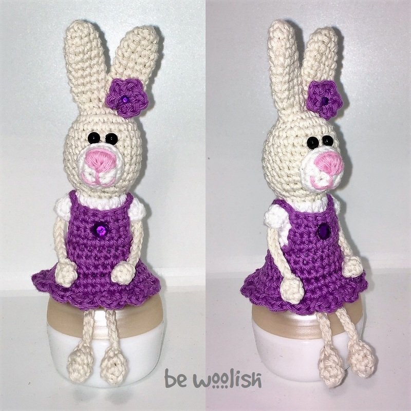 Für jeden, der noch eine Kleinigkeit für das Osternest häkeln möchte, ist die niedliche, kleine Hasendame Svenja genau das Richtige. Auch als Dekoration, als Kantenhocker, in einem Türkranz oder auf der Ostertafel macht Svenja eine gute Figur. Ideal auch um Wollreste zu verarbeiten.