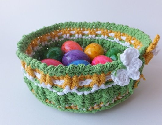 Peppige Häkelkörbe für jeden Anlass, natürlich auch für Ostern geeignet.