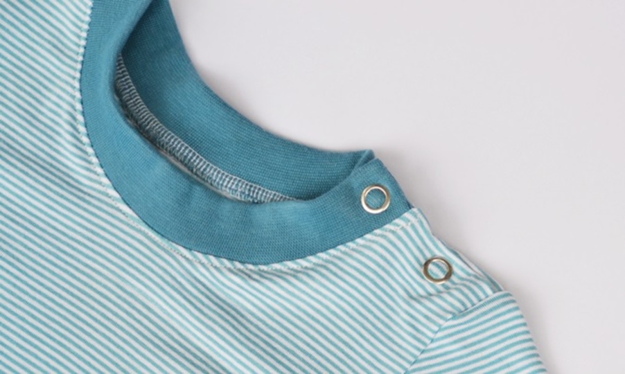 An der Schulter sind 2 Druckknöpfe für ein einfacheres Anziehen für Mama und Kind.