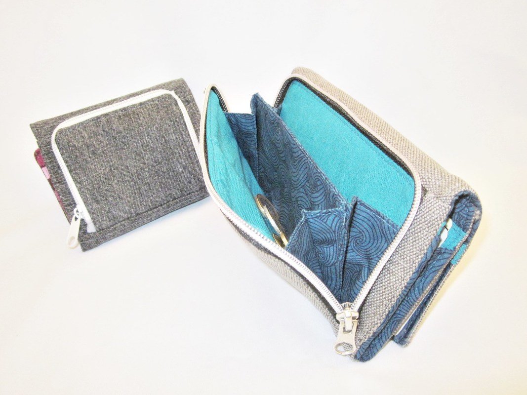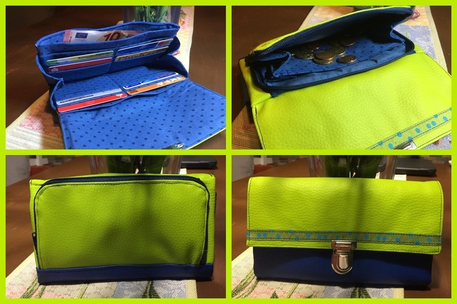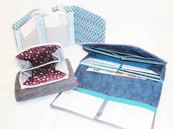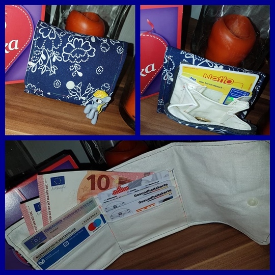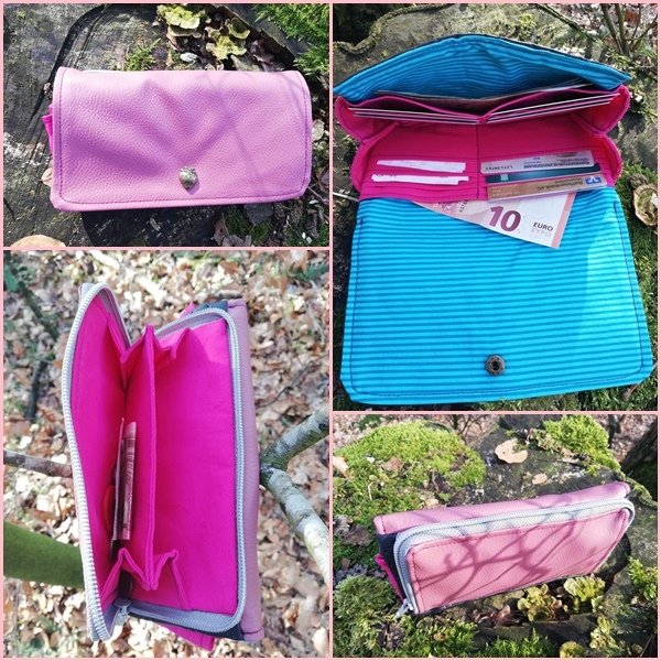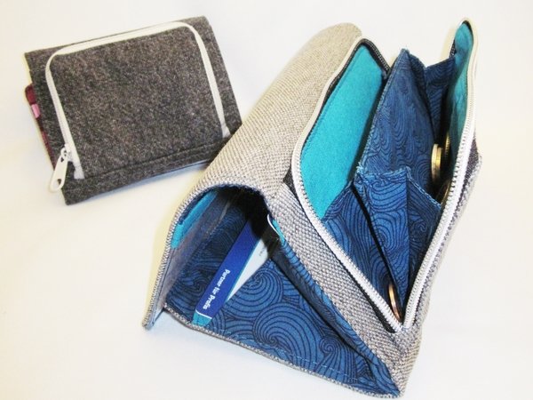 Die Geldbörse "Fröschli" hat ihren Namen vom Münzfach: auf der Rückseite der Börse, geht es durch den ums Eck genähten Reißverschluss das "Maul" ganz weit auf. Zusätzlich hat das Münzfach durch eine Trennwand zwei separate Fächer.