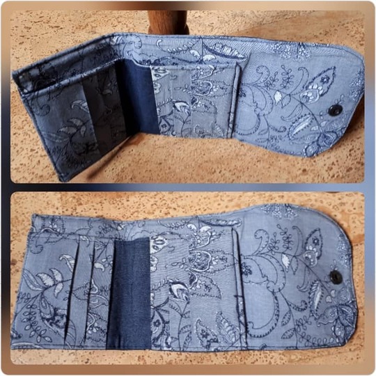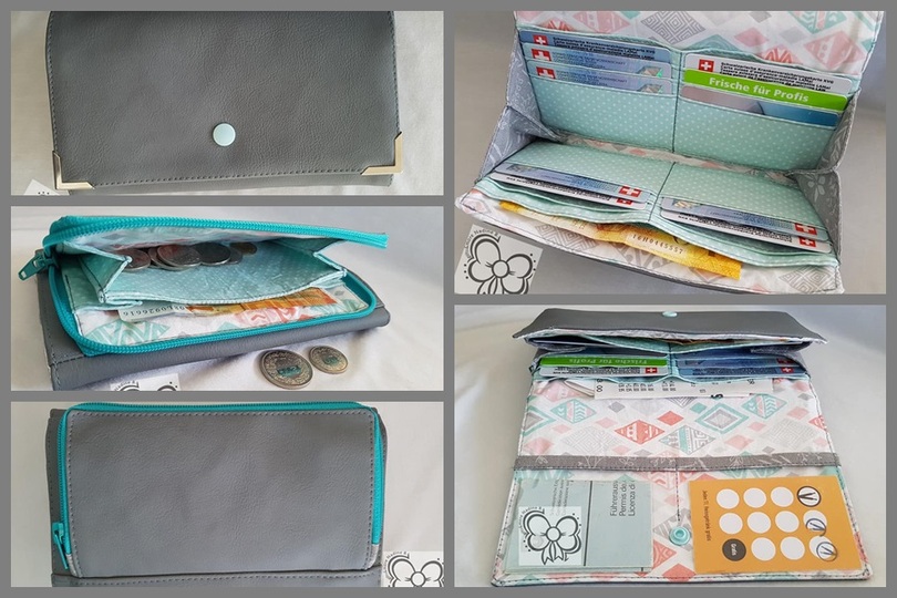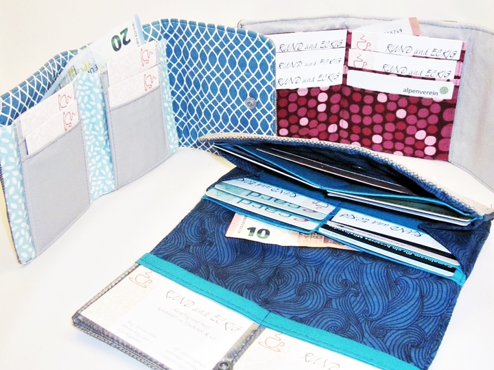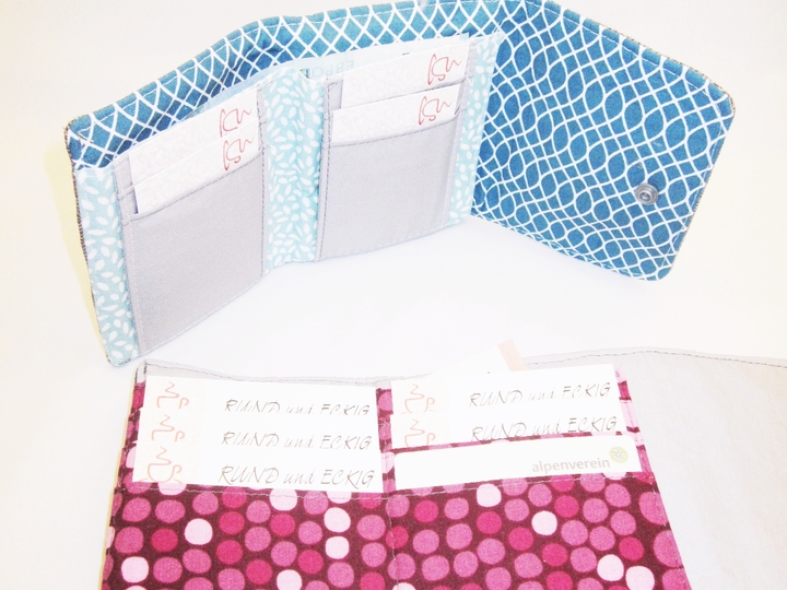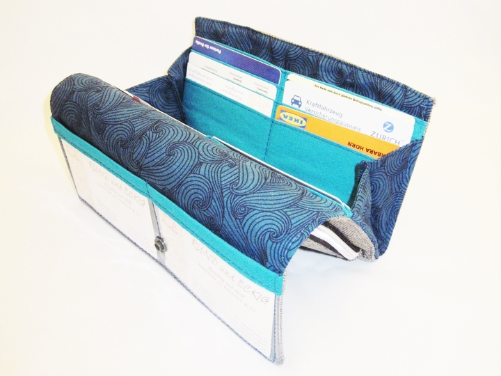 Lediglich die Innenseite und die gefalteten Kartenfächer benötigen mehr Stoff (Innenstoff) in einem Stück: