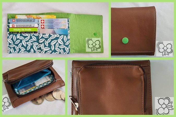 Innen ist die Geldbörse Fröschli relativ einfach zu nähen: Kartenfächer, Scheinfach, optionales Sichtfenster.