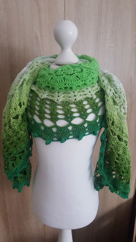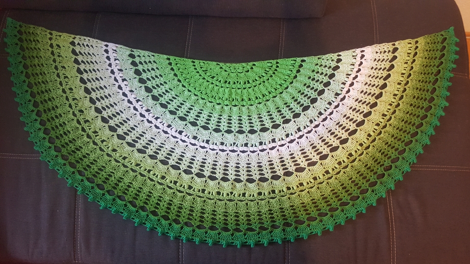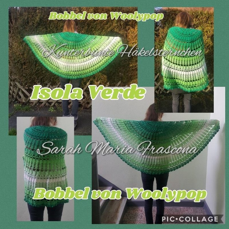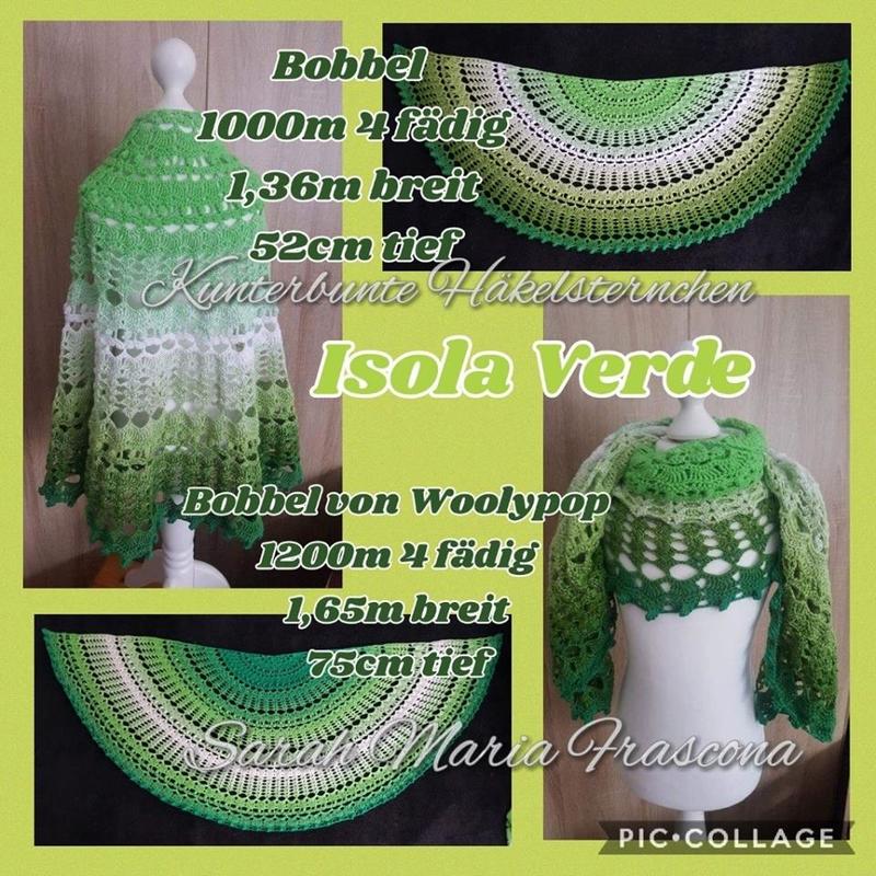 Isola Verde ist ein wirklich sehr schönes halbrundes Tuch von Kunterbunte Häkelsternchen. Es heißt auf Deutsch grüne Insel und kann sich wirklich sehen lassen. ;) Leider gibt es bei der Anleitung keine Wiederholungen, aber für mich ist es trotzdem ausreichent groß geworden.