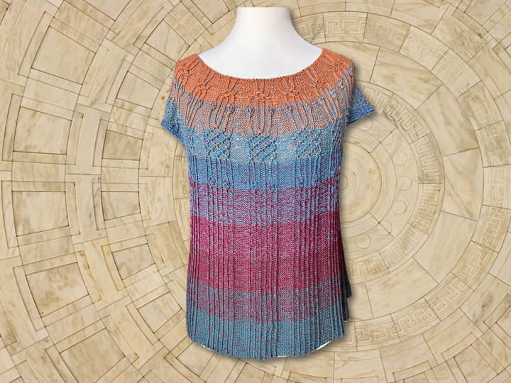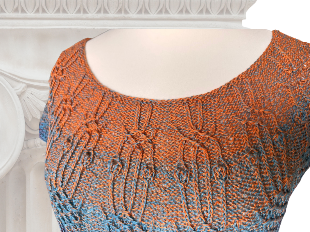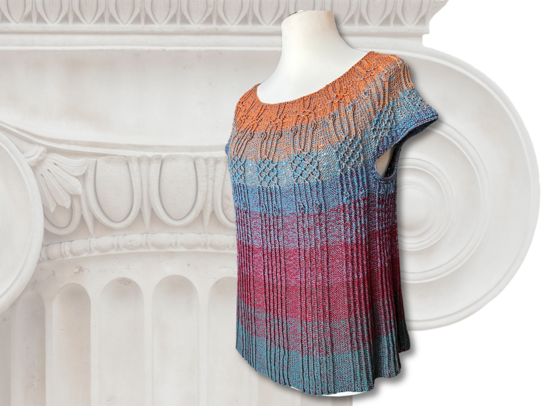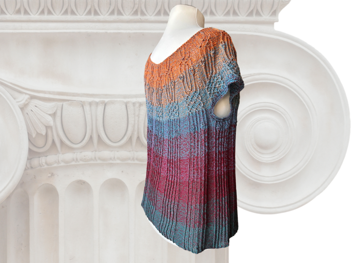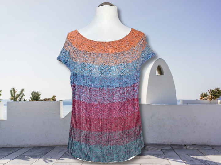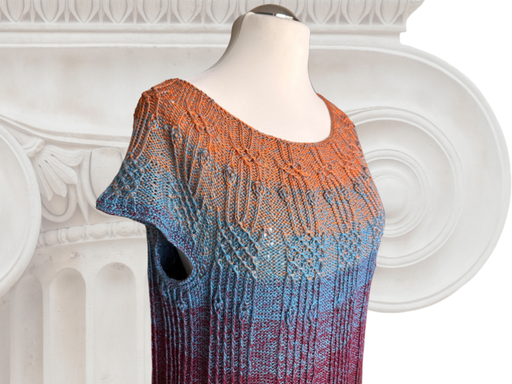 Diese Tunika wird in Runden von oben nach unten gestrickt. Das verführerische Muster an der Passe läuft nach unten hin zart aus und betont deine schöne Figur.