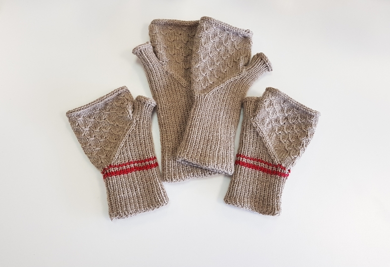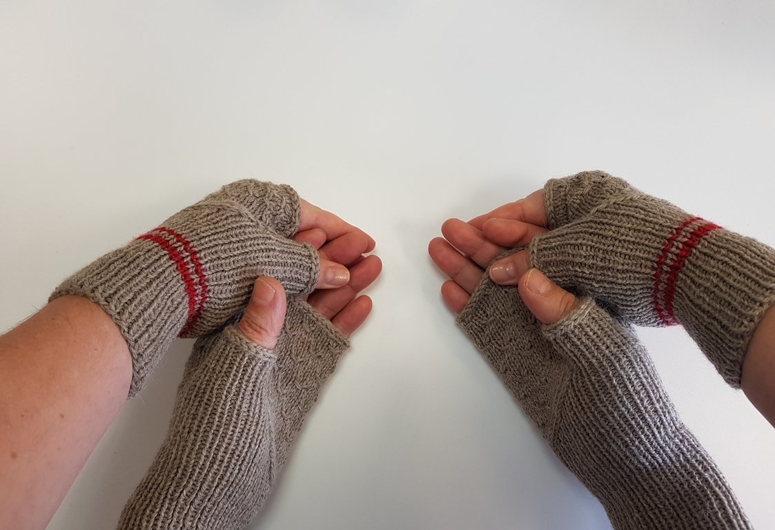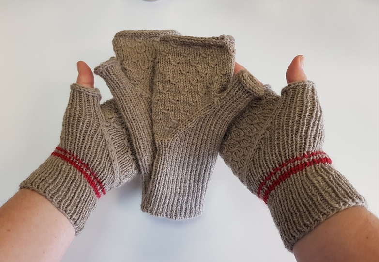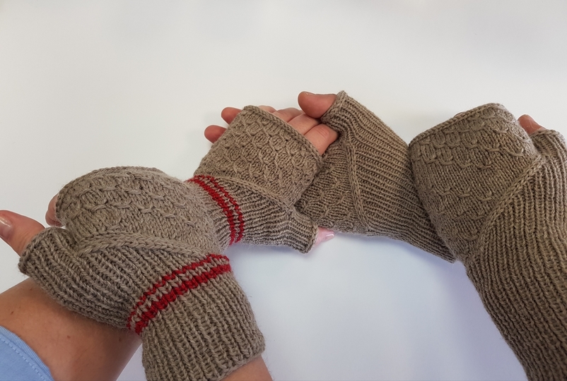 Die Handstulpen werden am Stückgestrickt, ohne Nähte, nach dem Prinzip wie man Socken strickt.