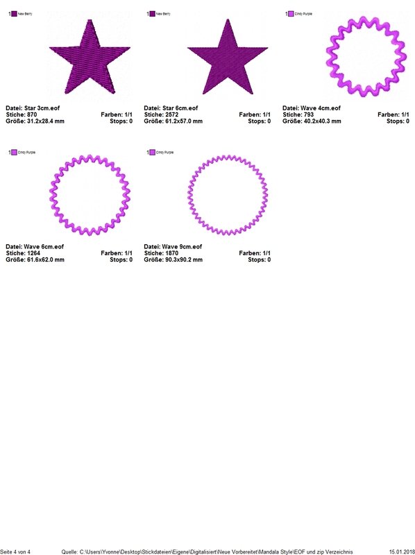 Sollte Ihre Stickmaschine eine Stichzahlbegrenzung haben, prüfen Sie bitte erst ob Sie die Anzahl der Stiche meiner Motive verarbeiten können.