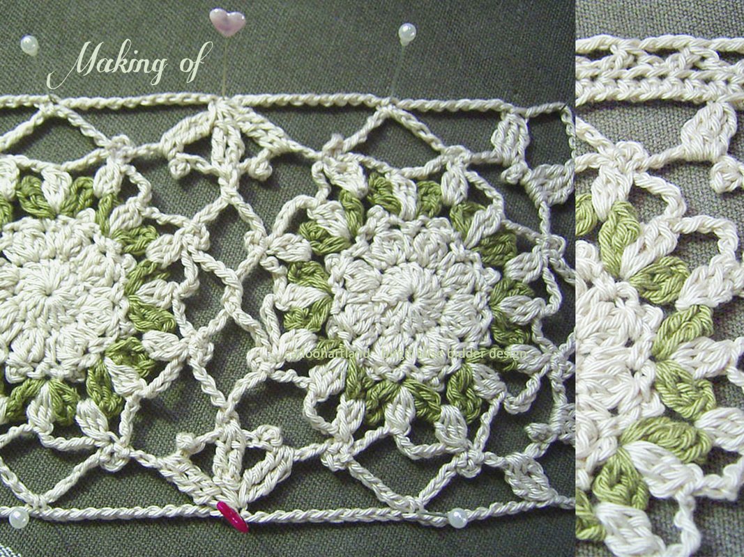 Das Tischband wird nach der alten Gipüre-Technik gehäkelt, die auch als "Irische Häkelei" bekannt ist