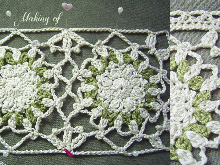 Hier werden zarte Motive durch Luftmaschenketten und Picots