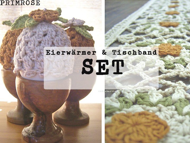 Häkle Dir dekorative Eierwärmer passend zum Tischband PRIMROSE