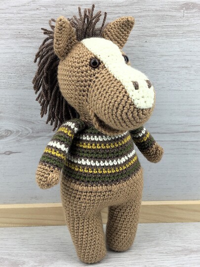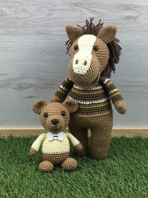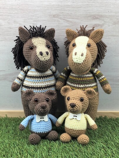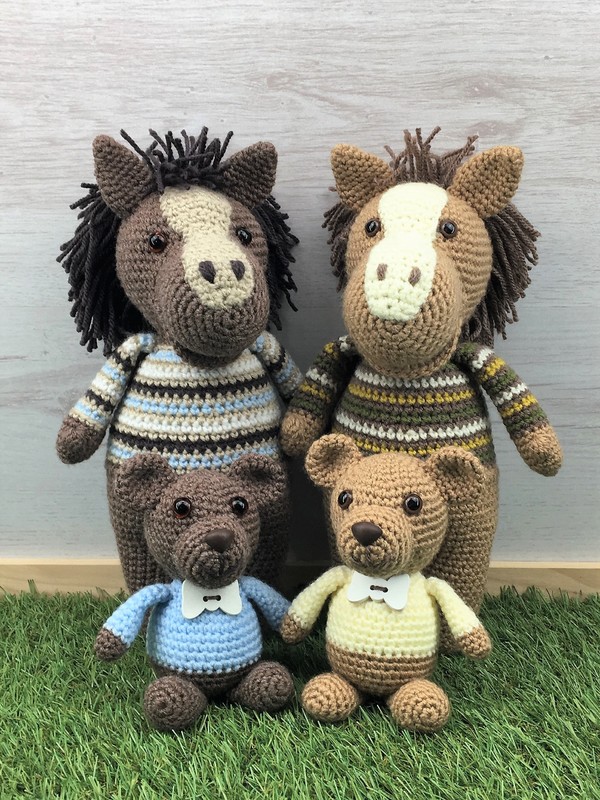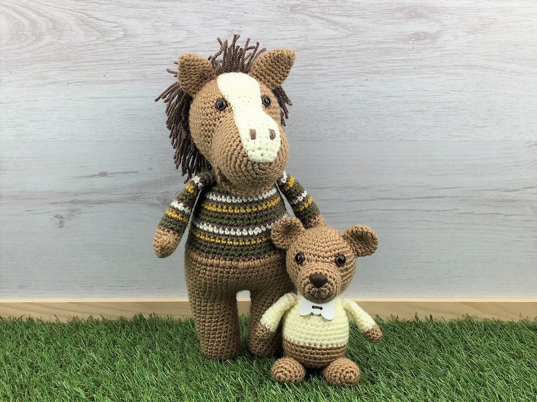 Häkelanleitung für ein Pferd und einen Bär als PDF-Datei.