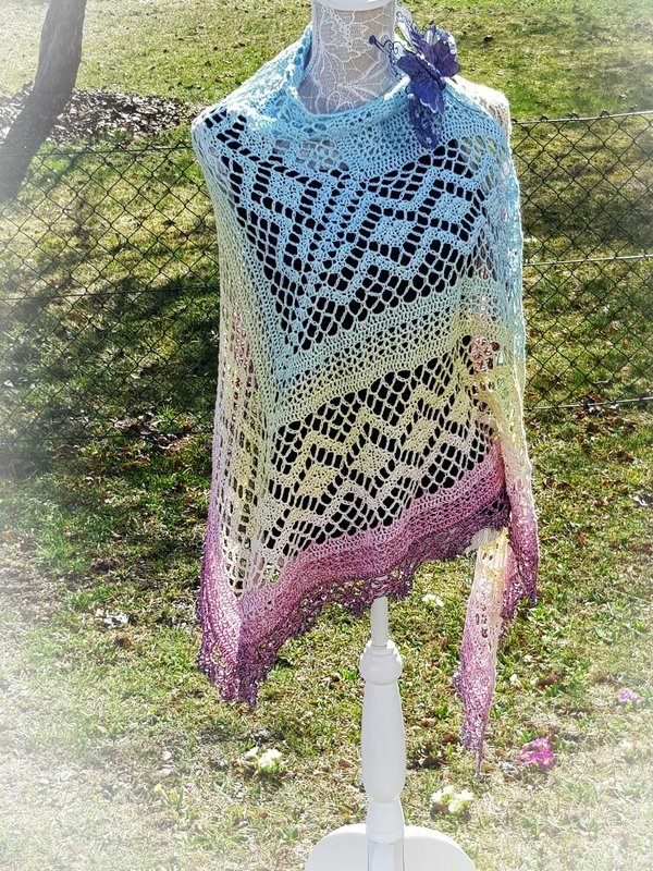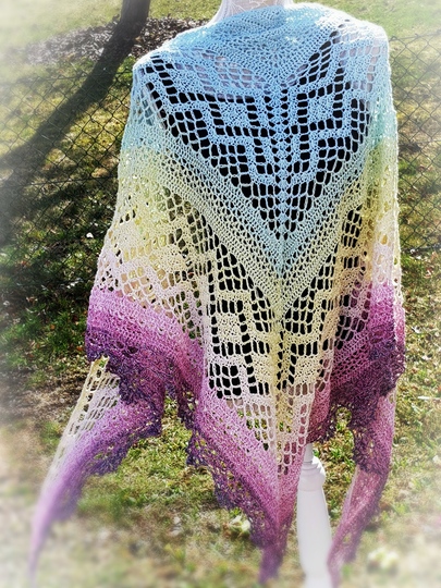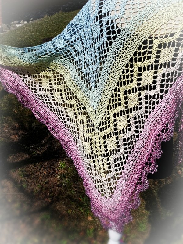 Klare Strukturen braucht jeder im Leben, warum also nicht auch in Form eines schönen Dreieckstuches. Dieses Tuch besteht aus zwei sich wechselnden Mustern, wovon das eine die klaren Formen der Quadrate wiedergibt. Das Tuch ist ein luftig leichtes Tuch für den Frühling und Sommer und kann auch als Hüfttuch getragen werden.