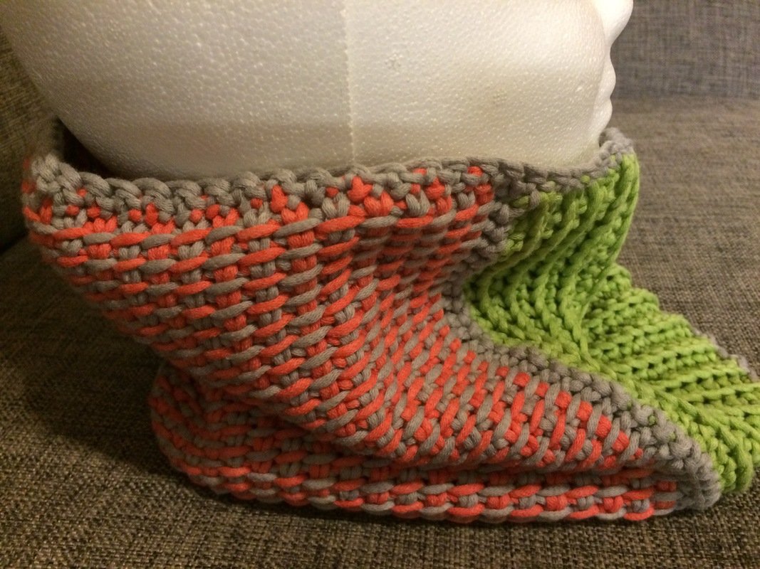 Benutzt habe ich die Wolle Schachenmayr Journey es ist eine super tolle 44% Baumwoll,36% Polyacriy,20% Polyamid ,1 Tunesische Häkeln.8mm und eine normale Häkelnadel 6mm.