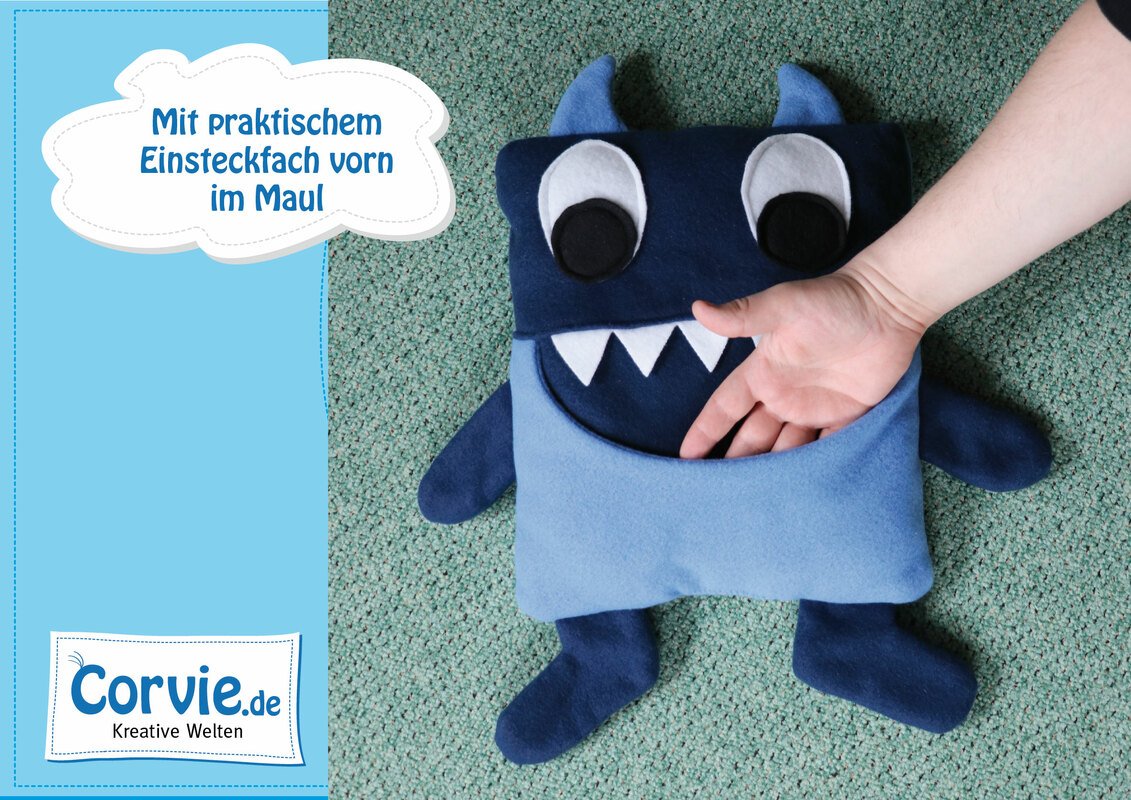 Quadratisch, praktisch, kuschlig. Mit Vielfraß, dem kleinen Monster kannst du Kindern einen bunten Spielgefährten ganz einfach selbst nähen. Durch seine flache Form kann er sowohl als Kissen benutzt werden, als auch als Kuscheltier fest im Arm gehalten werden.