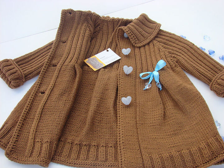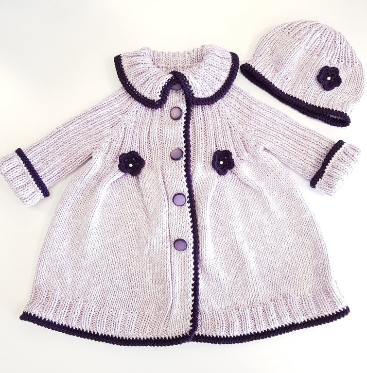 Der Mantel ist am Stück gestrickt, ohne störende Nähte. Für eine bessere und bequeme Passform ist der Mantel als Raglan von oben gearbeitet, die Mütze ist ebenfalls am Stück gestrickt.