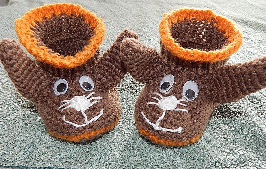 Hier bekommst Du die Anleitung für ein paar Hasenschuhe, welche Du mit dieser Anleitung in jede beliebigen Größe nacharbeiten kannst. Sie ist Schritt für Schritt beschrieben und mit vielen bunten Bildern versehen. Der Hasenschuh an sich ist gehäkelt, was eine tolle Stabilität zur Folge hat und der Schaft wurde elastisch und bequem gestrickt. Es werden keine fortgeschrittenen Kenntnisse vorausgesetzt, deshalb ist die Anleitung auch für Anfänger ideal. Der Arbeitsaufwand ist sehr gering. Deshalb eignen sich diese Schuhe auch als schnelles Geschenk oder Mitbringsel.