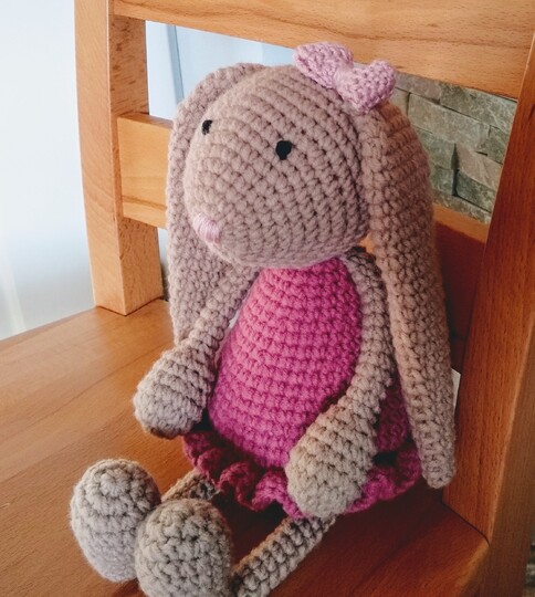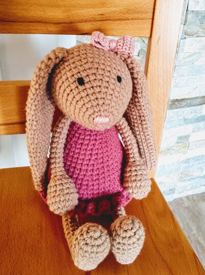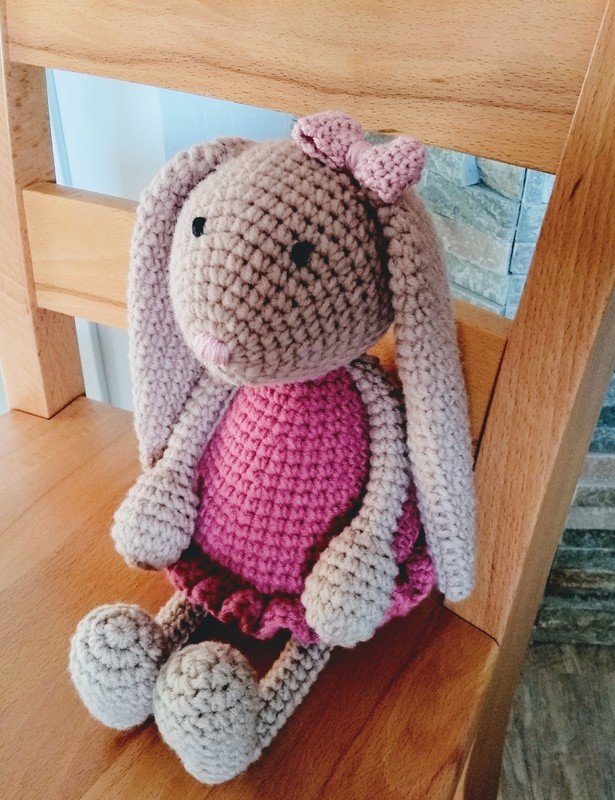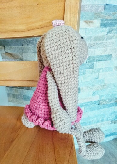 Wenn Du den das süße Häschen mit den, in der Anleitung angegebenen Materiallien häkelst, wird er ca. 30 cm groß und wunderbar kuschelig!