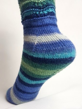 Die Fixe-Ferse „Ozean“ ist eine Top-Down Socke, d.h. sie wird von oben nach unten gestrickt.