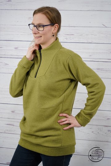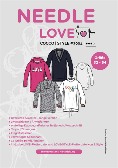 Dieser modische Sweater zeigt sich mit extrem coolen Ausschnittlösungen. Ob als Hoodie mit einteiliger Kapuze, Turtleneck-Variante, tiefer V-Ausschnitt oder Troyer (Zipkragen), COCCO sieht immer wieder anders aus. COCCO ist ein stylischer Allrounder für angesagte Freizeit-Looks. Die coole längere Silhouette wird durch die nach vorne verlegte Seitennaht und seitlichen Eingriffstaschen gekonnt akzentuiert. Der Schnitt lässt sich ganz easy zur Lieblings-Jeans kombinieren. Definitiv ein smarter Allrounder, der unheimlich wandelbar und vielseitig zu stylen ist. Ein cleaner Schnitt mit vielen Variationsmöglichkeiten, u.a. hast du zusätzlich die Wahl zwischen 2 Ärmelvarianten oder kannst COCCO zum Kleid verlängern....