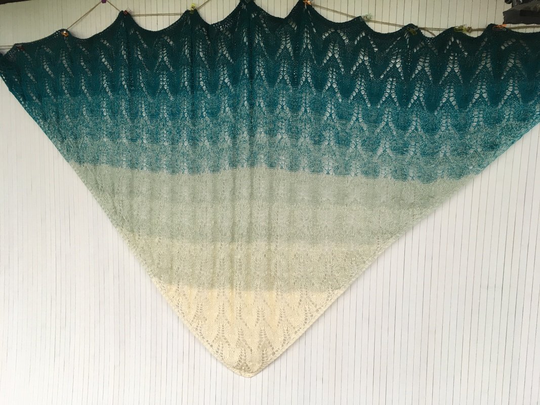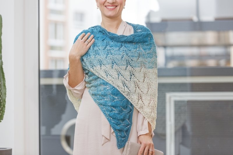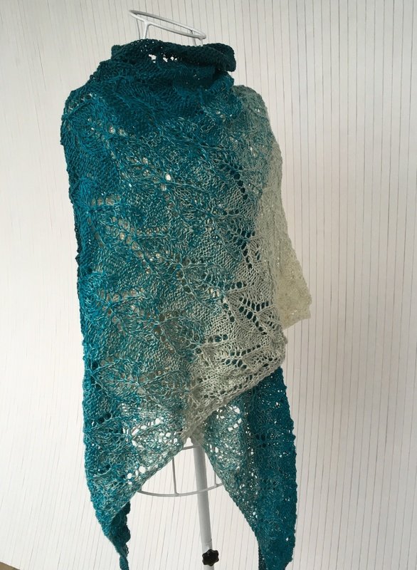 Das Tuch Tautropfen wird nach einer Strickschrift gearbeitet