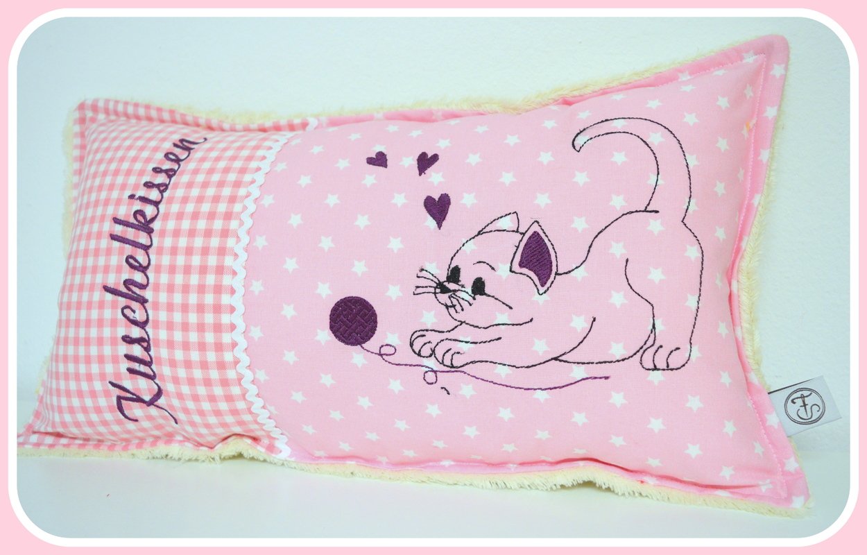 Mit wenigen Stichen können Sie eigene Nähprojekte wie Taschen, Shirts, Kissen eine eigene Note verpassen!!! Süße Katze gestickt im Konturstich.