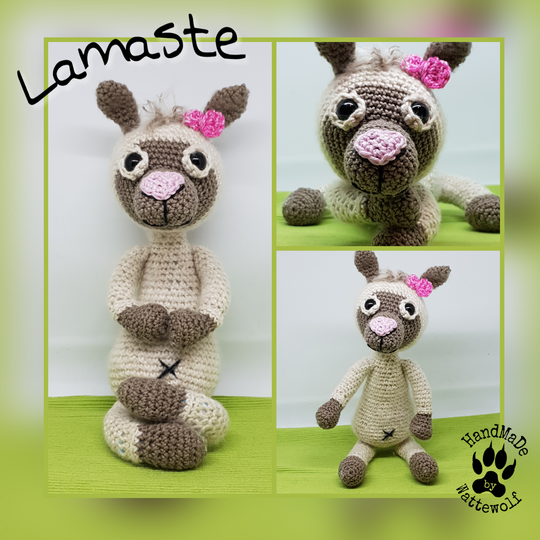 Das Lama ist mit der vorgegebenen Wolle ca. 30 cm groß. Dies variiert natürlich je nach Wolle, Nadelstärke und ob du fest oder locker häkelst.