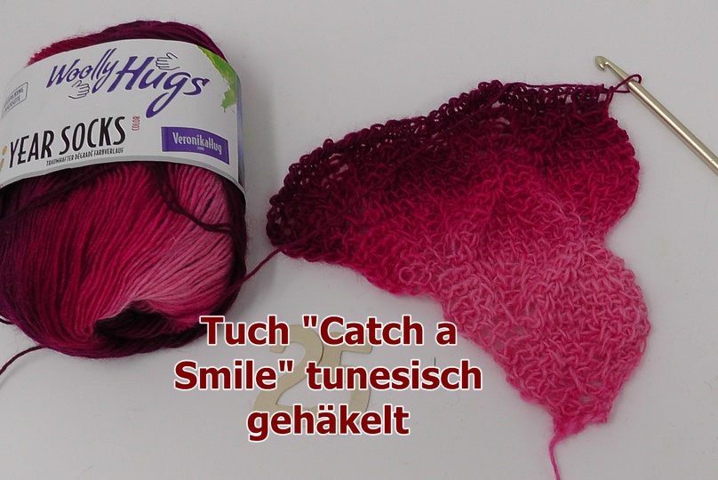 Das Tuch wird nach tunesischer Häkelschrift gearbeitet.