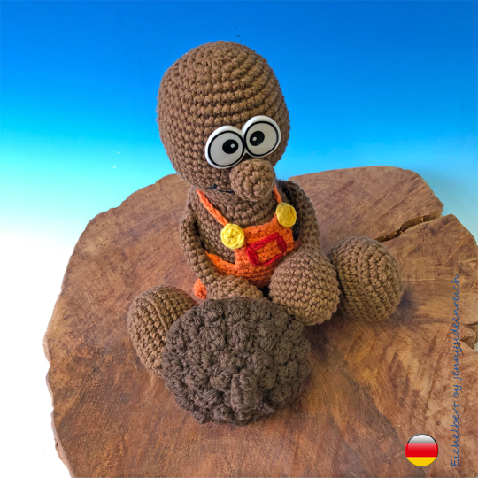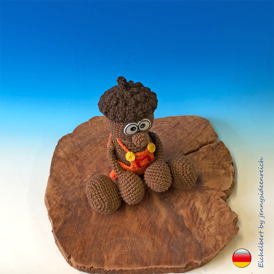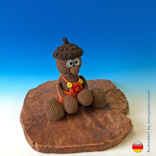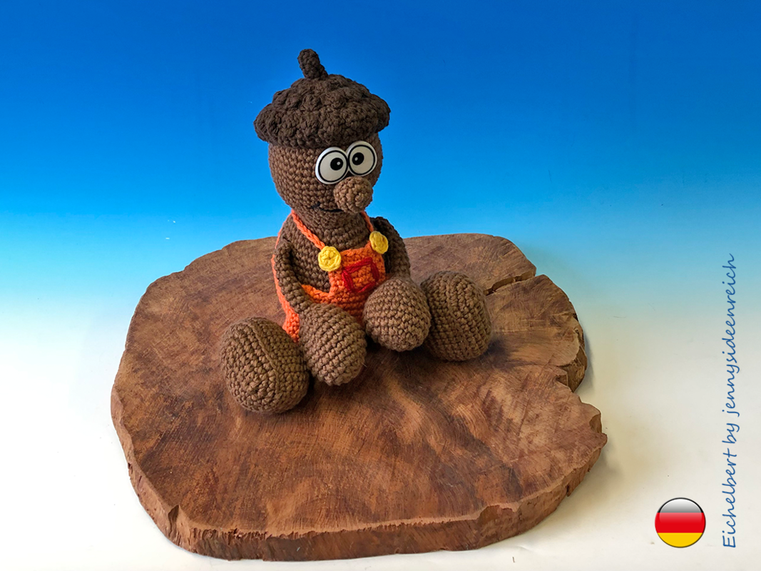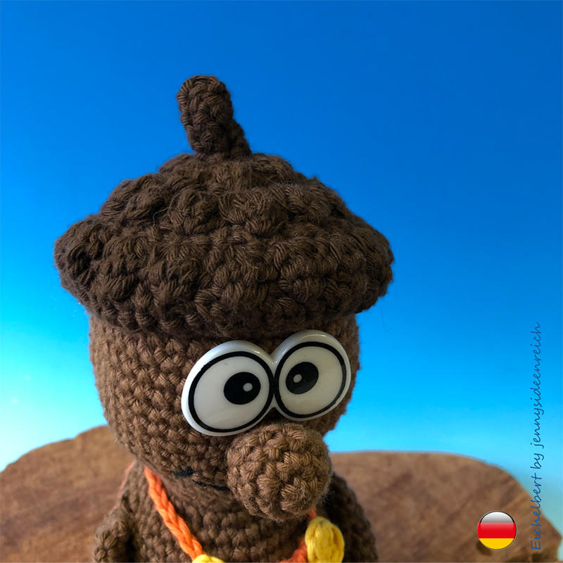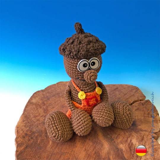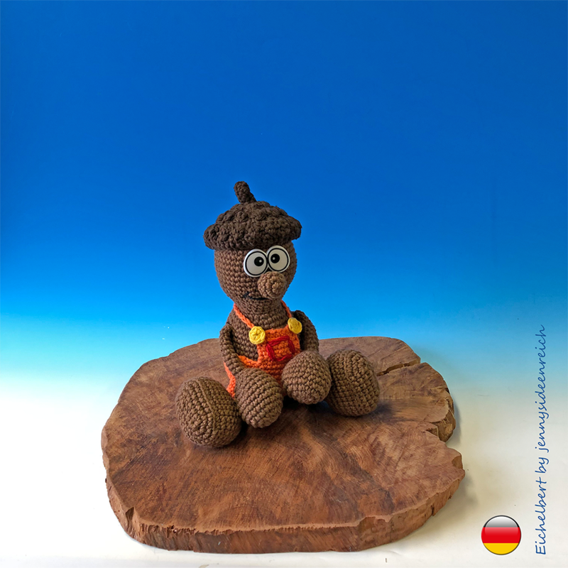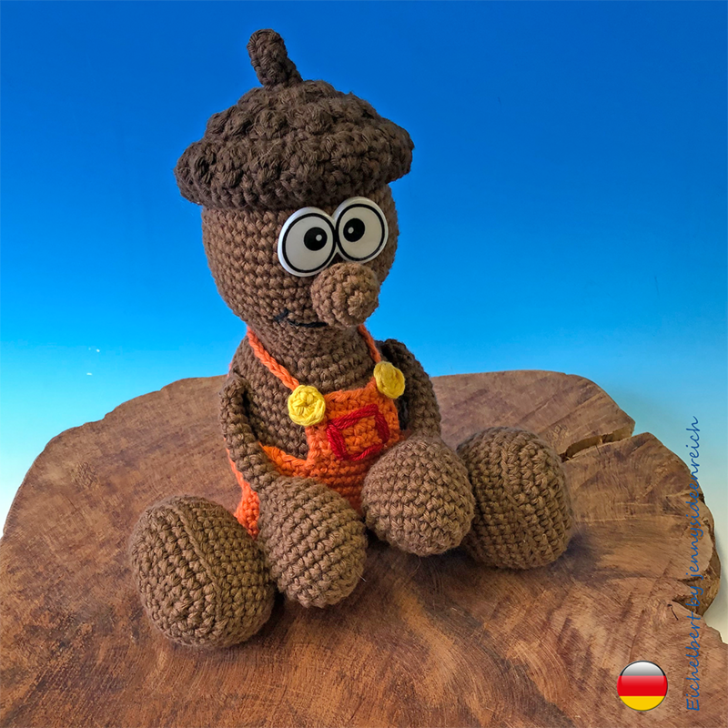 Ihr könnt hier die komplett ausformulierte Häkelanleitung zu Eichelbert erwerben. Sie ist 14 Seiten lang und besteht aus Texten und Bildern zu allen Einzelteilen.
