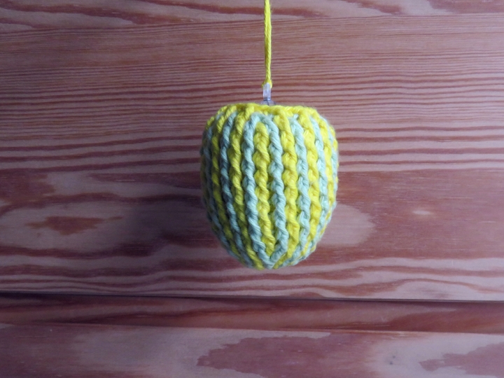 Du brauchst ein Acryl- Ei oder eines aus Styropor, das von unten nach oben mit diesem anspruchsvollen Muster gestaltet wird.
