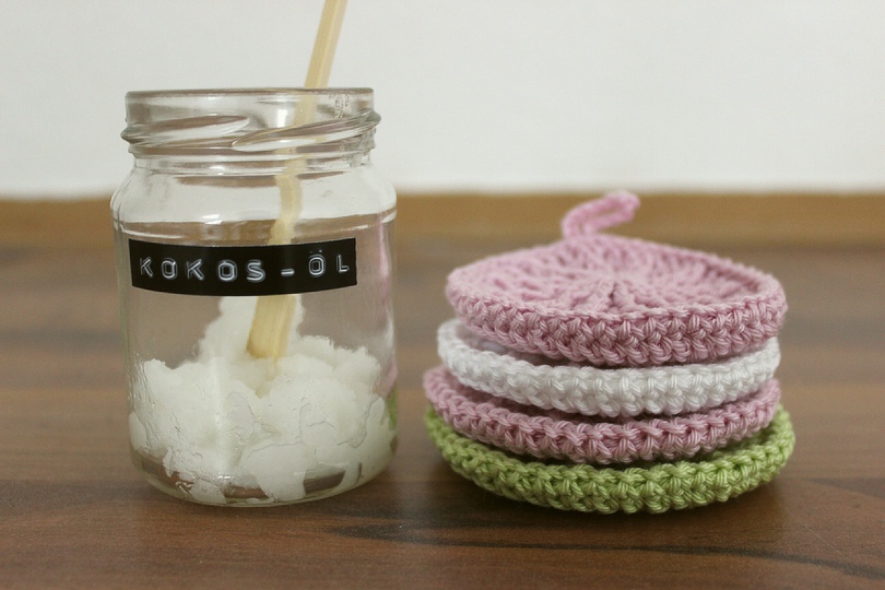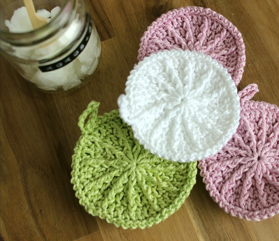 Häkelanleitung für wiederverwendbare, waschbare Kosmetik-Abschmink-Pads, gehäkelt aus festen Maschen, Stäbchen und Relief-Stäbchen.
