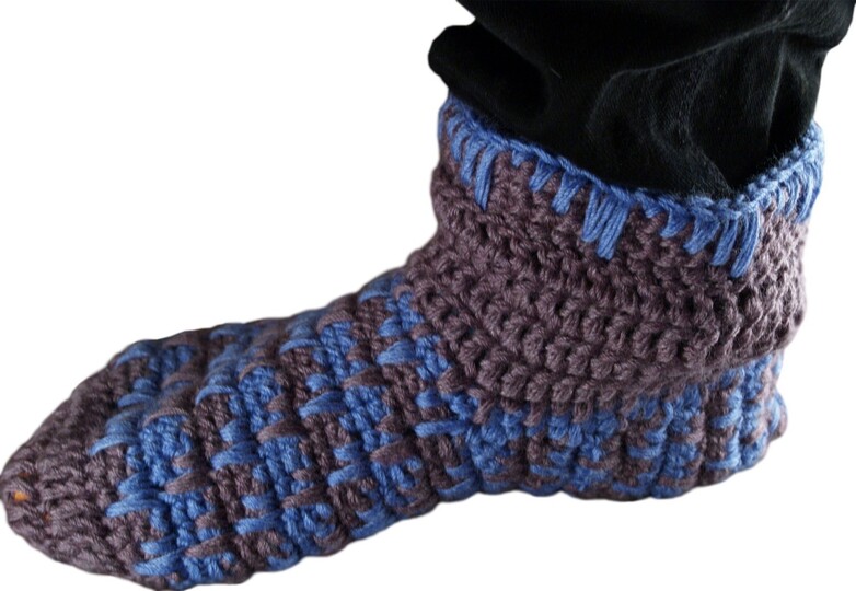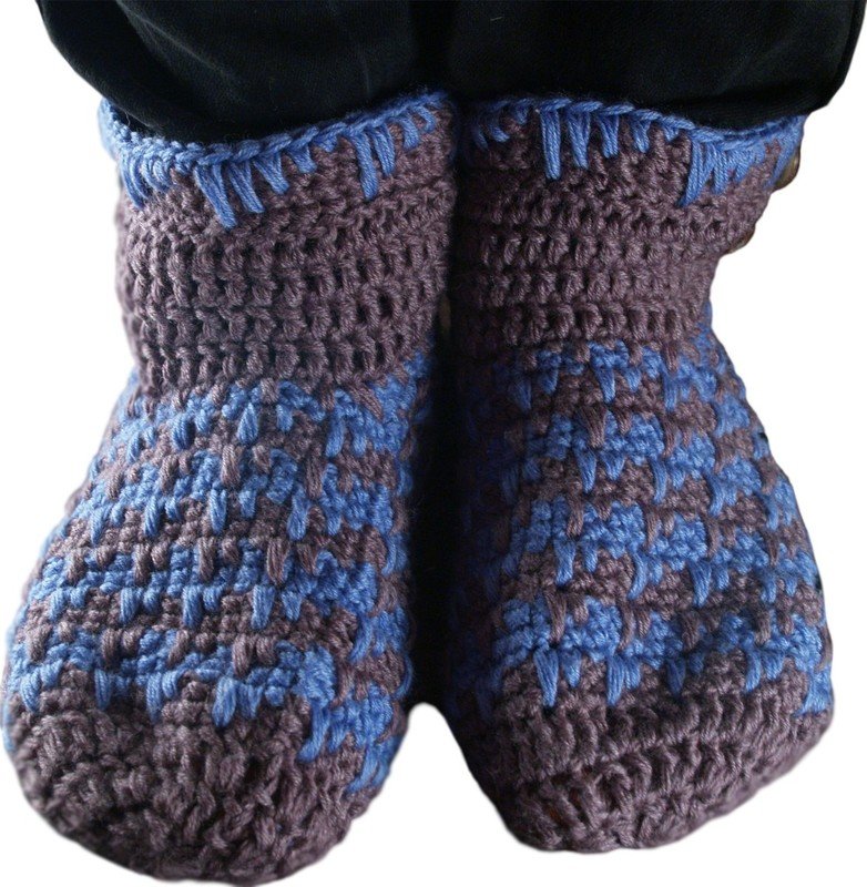 Wer hat behauptet, dass nur Frauen kalte Füße bekommen? Mit diesen selbst gehäkelten Hüttenschuhen gibt es nun auch für die Herren der Schöpfung unten rum was Warmes.