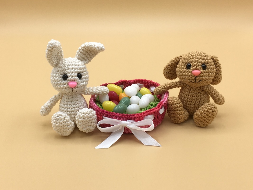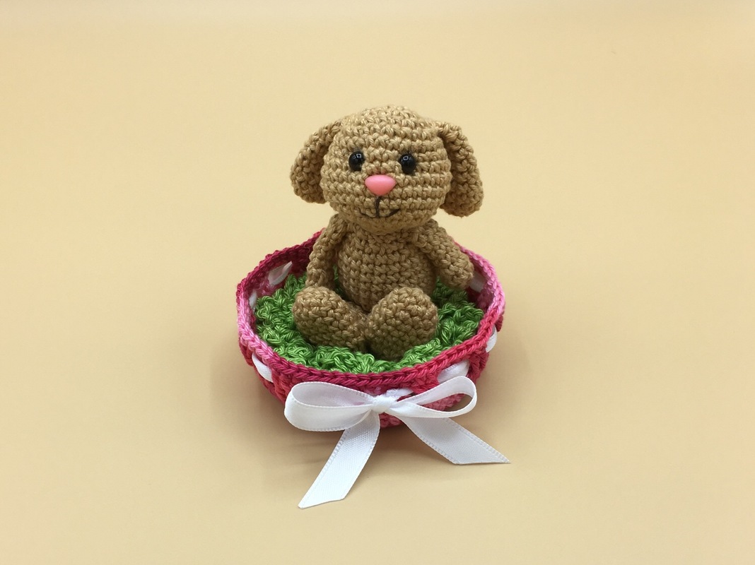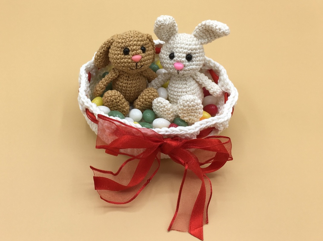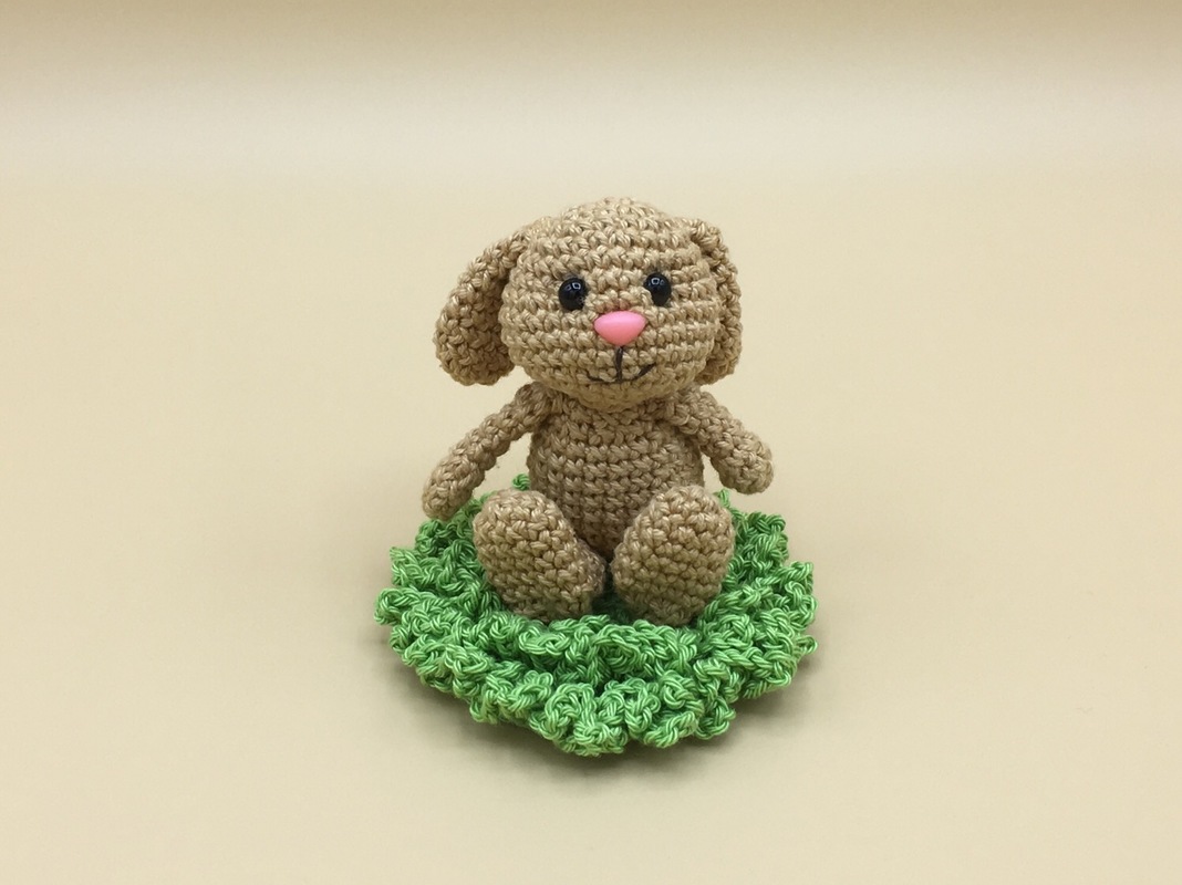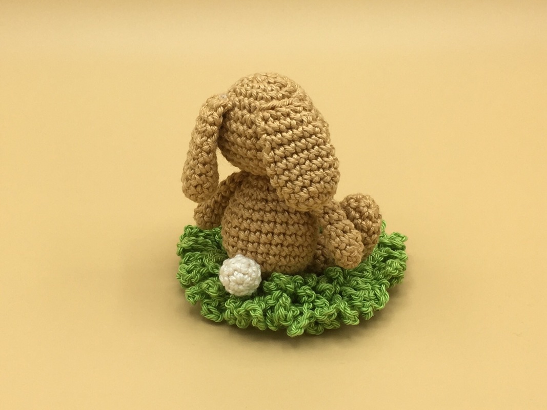Hase Milu ist ganz schnell gehäkelt und die Anleitung beinhaltet auch ein kleines Osterkörbchen und Ostergras.