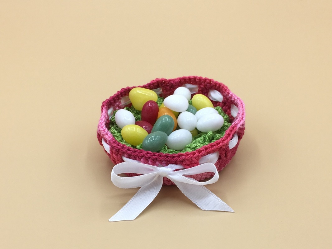 Durchmesser Osterkörbchen: ca. 8 cm (mit doppelten Faden ca. 14 cm)