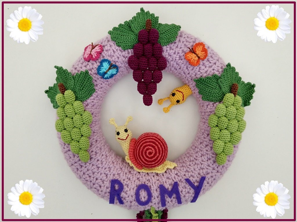 Wie die meisten meiner Türkränze kannst Du auch diesen hier personalisieren und somit die Kinderzimmertüre einer kleinen süßen Schnecke schmücken.