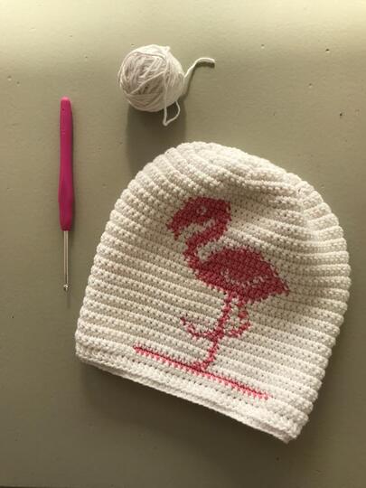 Hier könnt ihr die Anleitung für die Motivmütze La Flamingo erwerben.