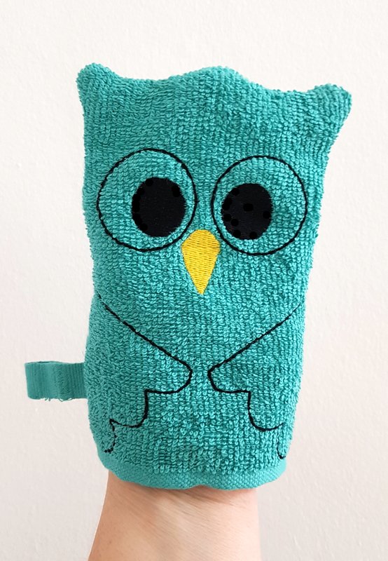Waschlappen Eule: 12,8 cm x 17,8 cm (4.550 Stiche)