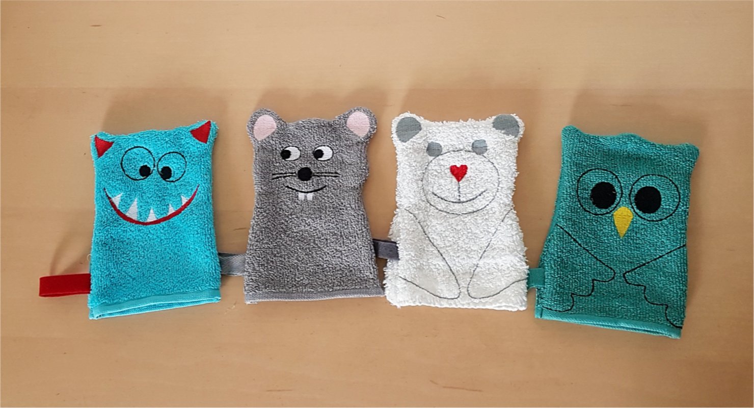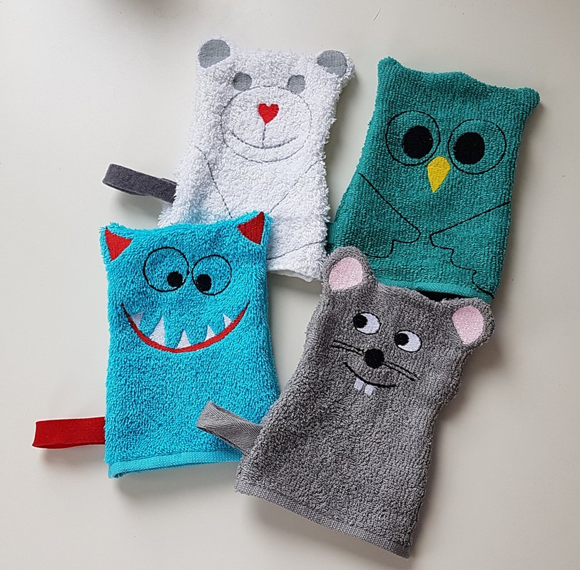Stickdatei "Waschlappen" Rahmen 13 cm x 18 cm - 4 Dateien im Set.