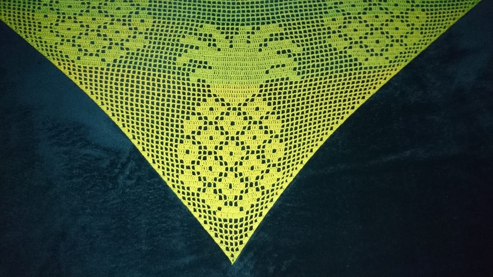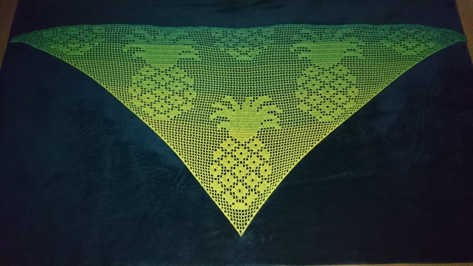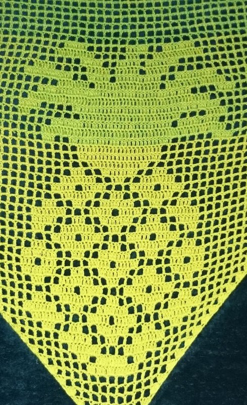 Die Anleitung ist auf 4 Seiten in teilweise Schrift (Erklärung Filethäkeln), der Anfang des Tuches in Pc-Häkelschrift und Zählraster geschrieben.