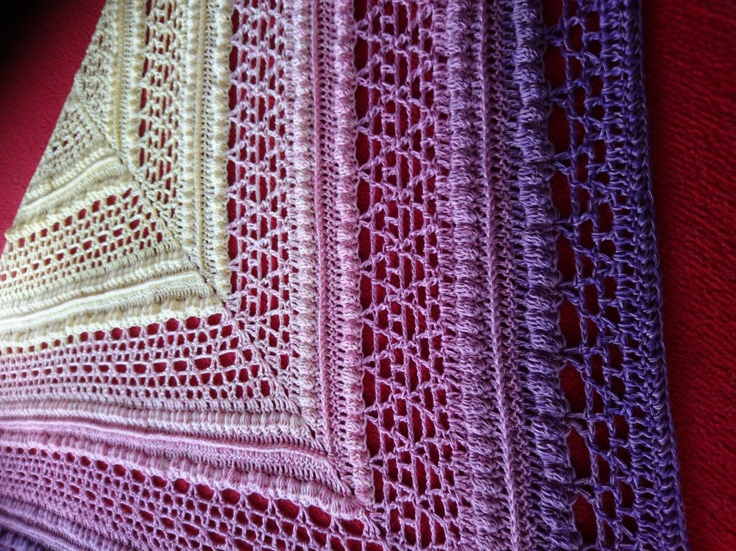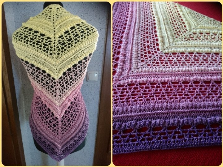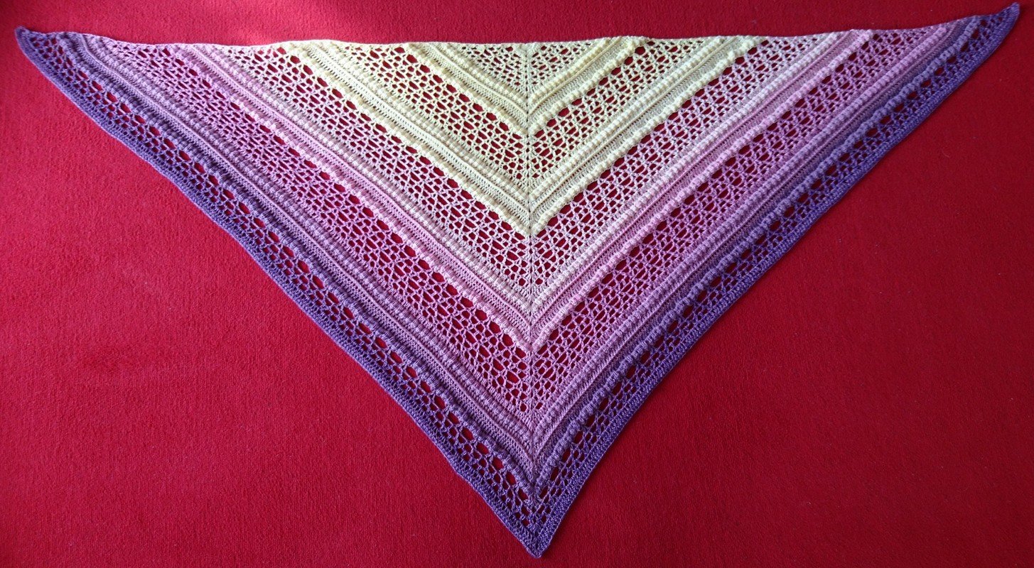 Die Anleitung für das Tuch besteht aus schriftlich ausfomulierten Reihen und beinhaltet eine Häkelschrift.