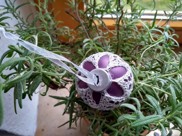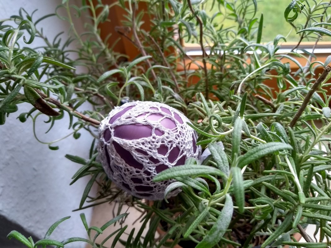 Anleitung für eine gestrickte Spitze, die über ein Glasei von ca. 7cm gezohgen wird.