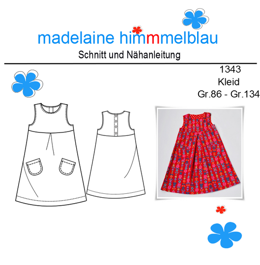 Schnittmuster Mädchenkleid mit vorderer Kellerfalte und Taschen – eBook PDF (Gr. 86–134)
