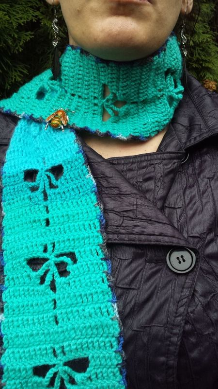 Der leichte Schal ist einfach gehäkelt. Er ist ein elegantes Accessoire an kühlen Frühlingstagen und Sommerabenden.