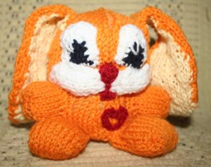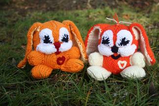 Diese knuffige Häschen haben Sie schnell gestrickt. Augen, Mund und sein "Herz" werden gehäkelt. Wenn Sie mittelstarke Wolle verwenden, wird der kleine Kerl ca 13 cm hoch.