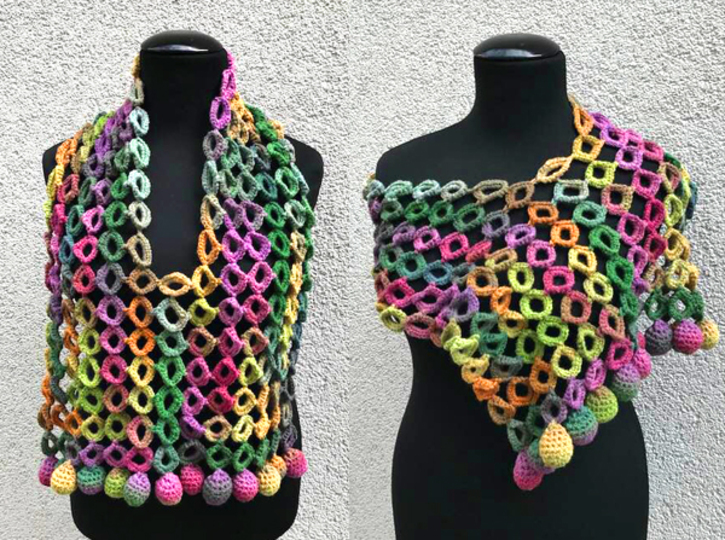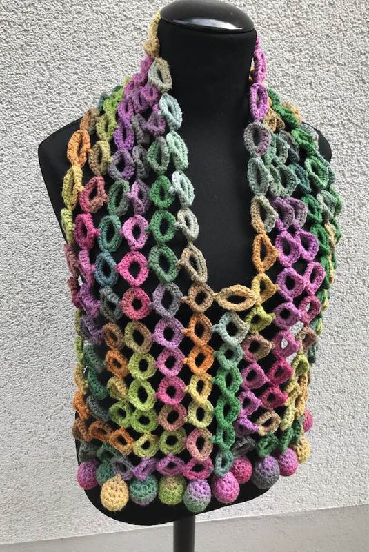 Das Halsobjekt "Christako" mit gehäkelten Kugeln macht schon Spaß beim herstellen..man kann gar nicht mehr aufhören.