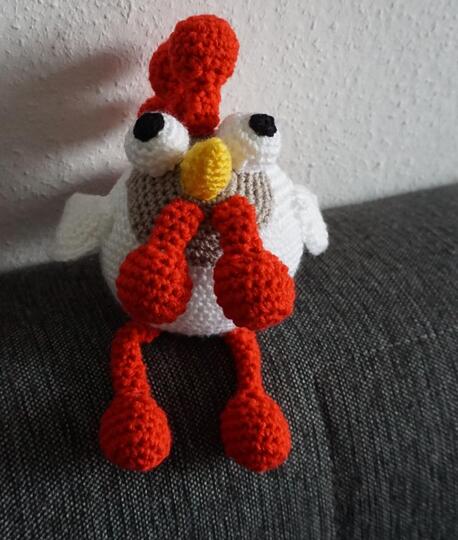 Hier bieten wir Ihnen unsere Häkelanleitung für den Hahn Bert an!