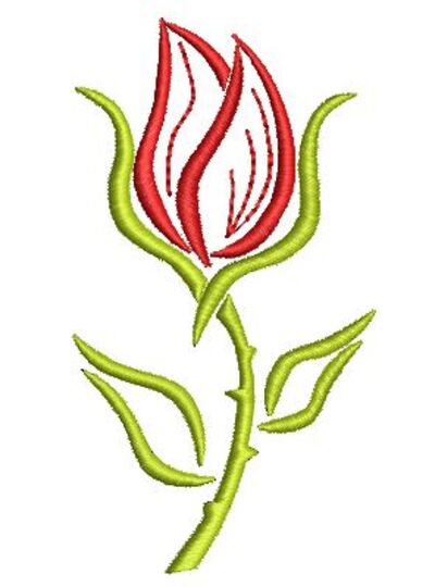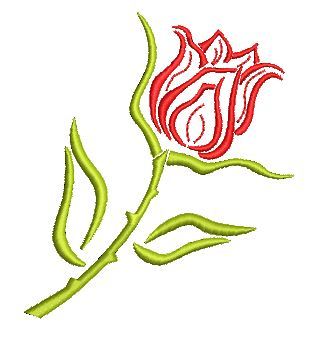 Die Rose wird mit zwei Farbstopps voll ausgestickt (Kontur Satin) und ist in drei Varianten enthalten:
